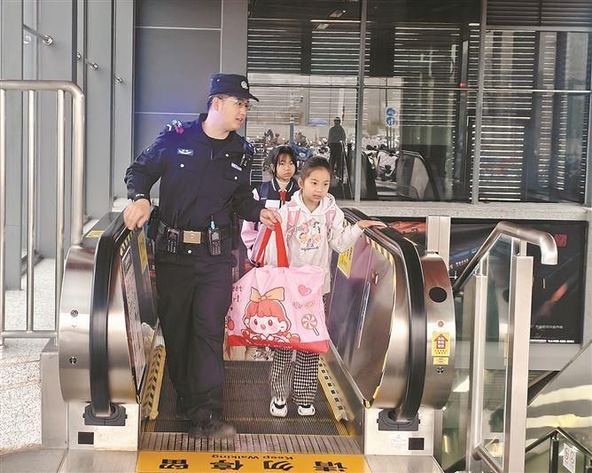 2025年11月3日6时50分,地铁乌石浦站,公共交通分局民警徐晓平正带领辅警在站内巡查,迎面而来的学生队伍中一个小女孩说:“有你们在,真好。”这一幕,让守护者与被守护者的“双向奔赴”具象化,也是公共交通分局以“亮灯见警”守护平安出行的生动缩影。